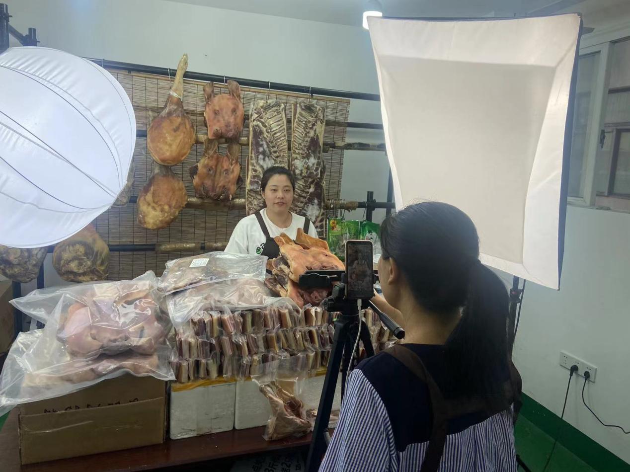 11月9日凌晨,黄山莜美电子商务名下的3个直播间内,主播还在卖力地对着镜头推荐自家的产品。公司负责人吕涛生介绍说,早在十月初,公司就根据前期的市场反馈,备足了猪头、五花咸肉、刀板香、香肠等特色产品20多万斤,保障“双十一”期间货源充足。