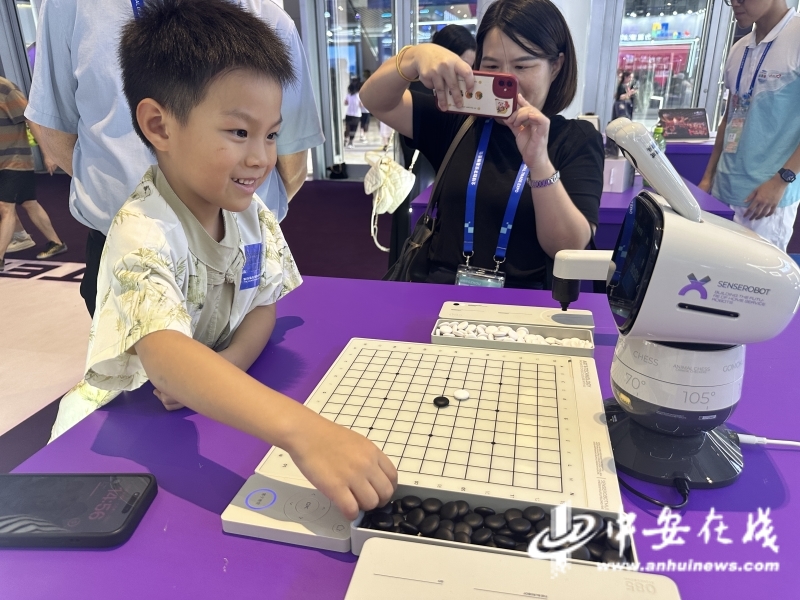 人工智能展区是本届数贸会最具人气的展区之一。科大讯飞作为安徽人工智能企业的代表,其展台前围满了体验者。